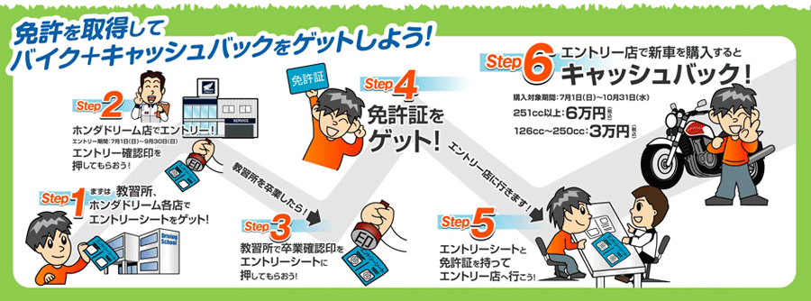 期間中に免許を取得して新車を購入すると \30,000 のキャッシュバックとな!?