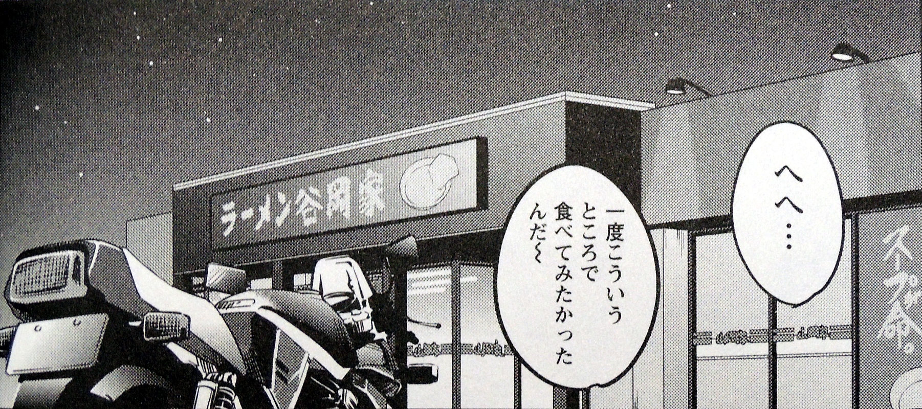 で、深夜にバイクに乗ってラーメンを食べに行くのがワルっぷりっていうか..