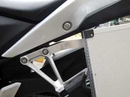 少し傾ける事によりスイングアームの可動域に干渉しないようにした。