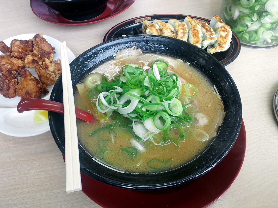 で、ラーメンとチャーハンと餃子と唐揚げを頂く。 ねぎだく♪