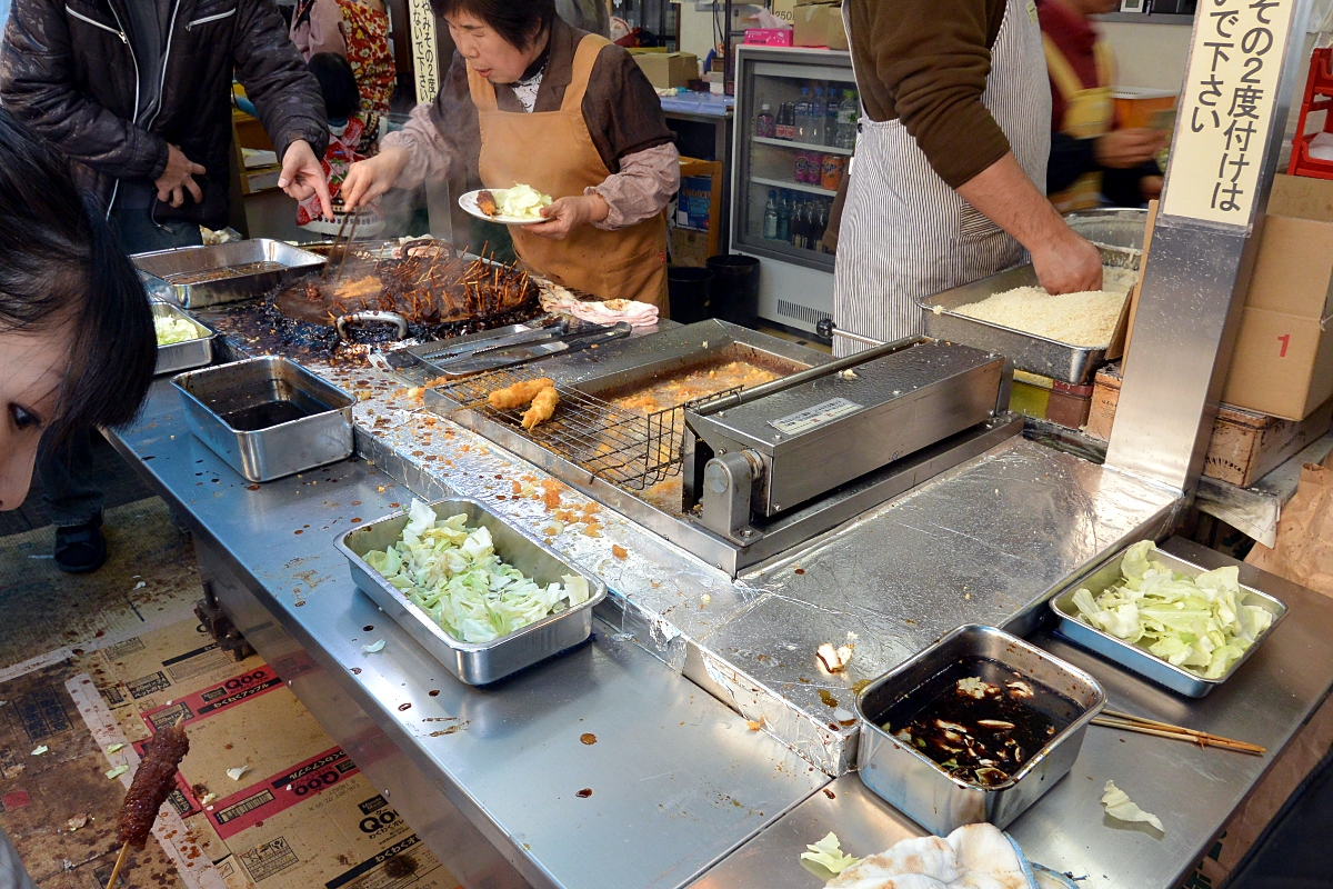揚げたてすぎて串が熱くて持てないのをどうにかしつつ