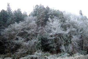 道端の木々が霜で真っ白になってたんで結構冷え込んでいるのだろう。