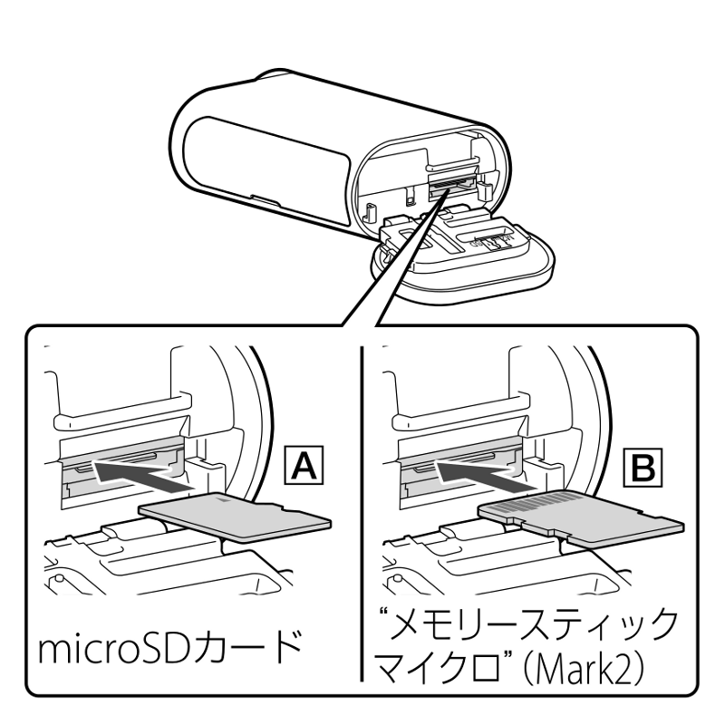 microSD と Memory Stick Micro のどらでも使えるようになってるんだけど