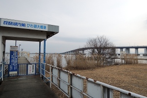 そこから無料になったと思わせつつまだまだ有料の琵琶湖大橋を渡り