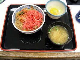 とりあえづ東名阪道・蟹江 IC 近くの吉牛で軽く朝飯して