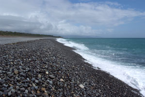 人っ子一人いない砂浜..っていうか小石浜ですかね。