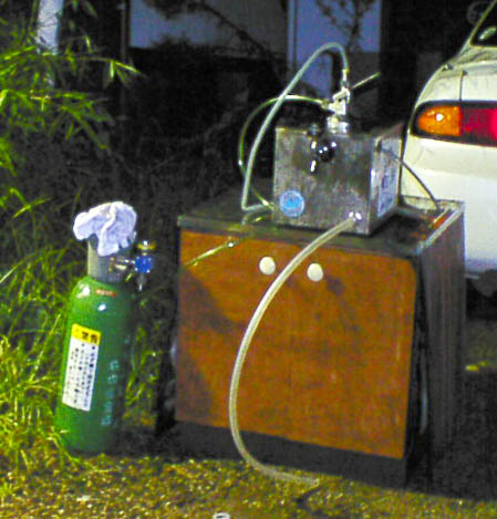 ガス切断とかあったんだけど、業者様は空の酸素瓶を持ってきたり。