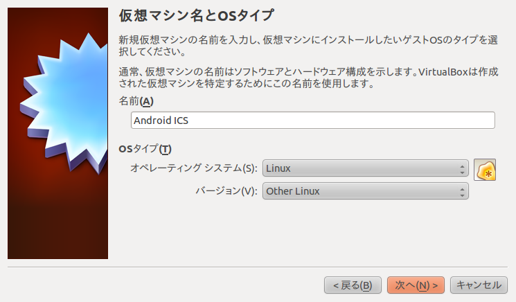 解凍したら VirtualBox OSE を起動して「新規(N)」を押下する。